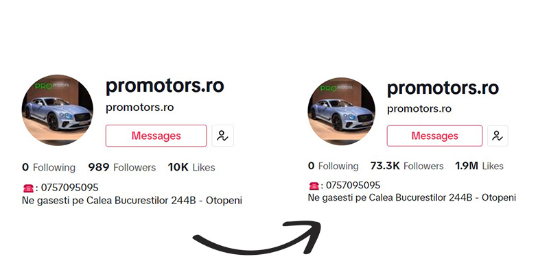 HRZ Media - experți în promovarea organica pe platformele online, în special pe TikTok și Instagram. Noi maximizăm vizibilitatea și vânzările clienților noștri, oferind soluții personalizate și inovatoare în marketingul digital in cel puțin 5 nișe diferite. Avem peste 20 de clienti multumiti, peste 500 milioane de views si peste 2 milioane de urmaritori acumulati